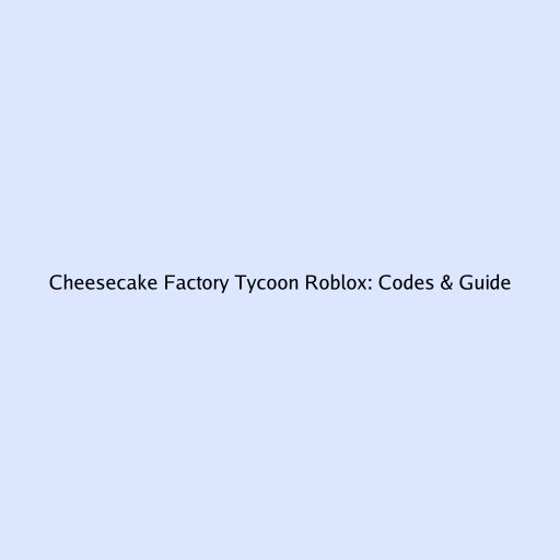 Cheesecake Factory Tycoon Roblox: Codes & Guide